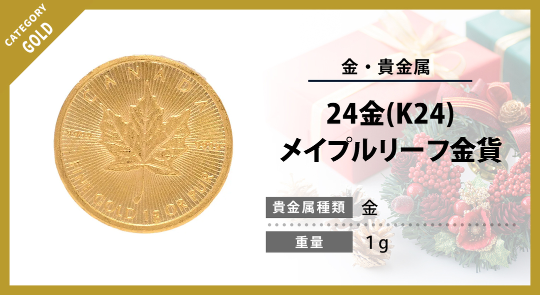 今回のお品物は、カナダ王室造幣局が発行する 24金 (K24)・1g のメイプルリーフ金貨です。